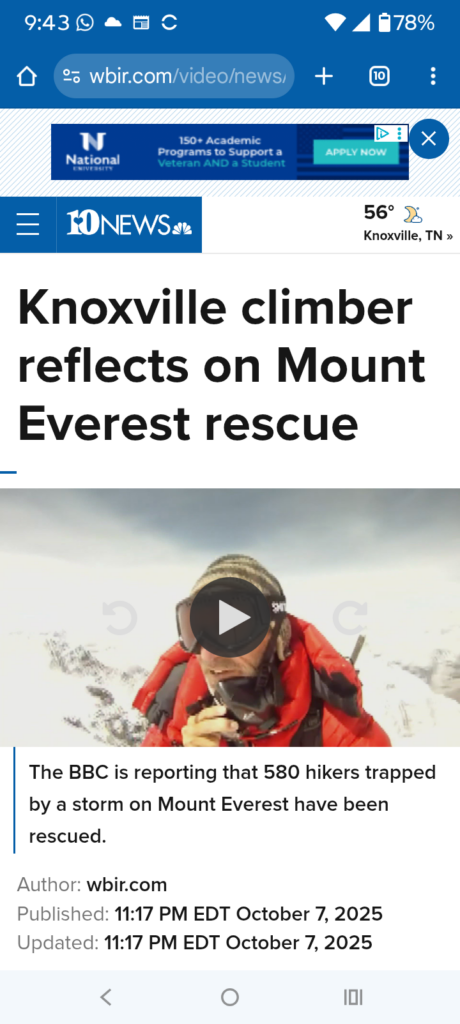 finally I’m sharing a link to an interview from WBIR about the people that were stranded on Everest last week. They’re kind enough to ask my opinion on the subject.